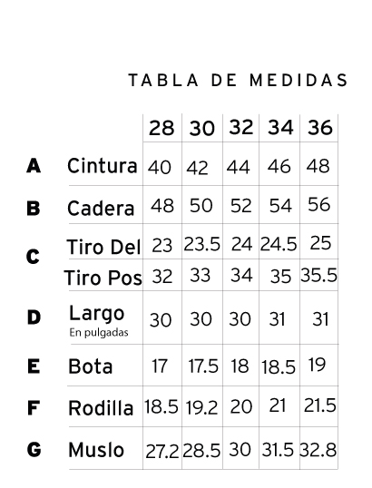 Jean Tapered fit. Seis bolsillos. Con cremallera. Tiro
